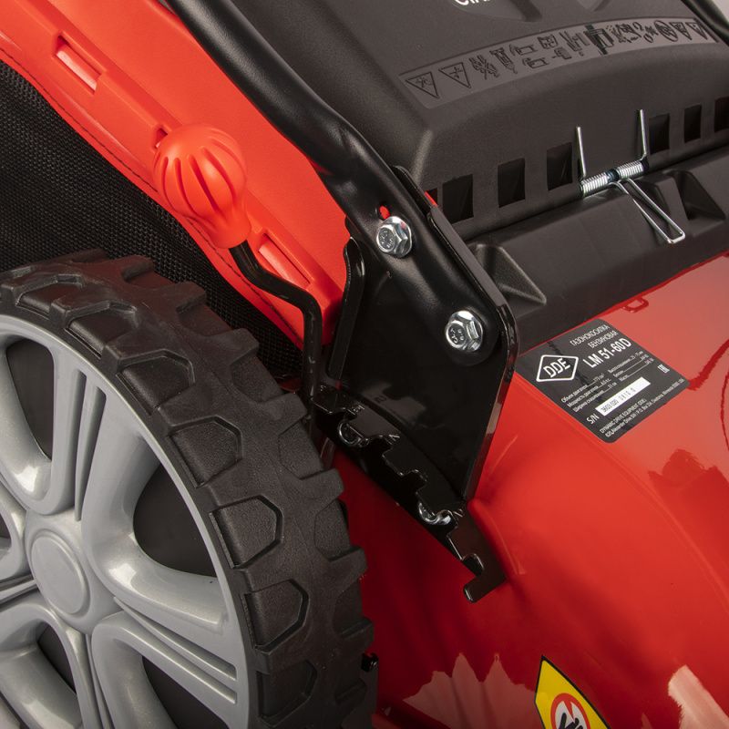 Газонокосилка DDE LM 51-60 D оснащена широкими колесами, которые обеспечивают легкое передвижение по газону. Благодаря этому, вы сможете быстро и без усилий обработать большую площадь. Кроме того, колеса имеют резиновое покрытие, что обеспечивает хорошую адгезию и предотвращает повреждение газона.