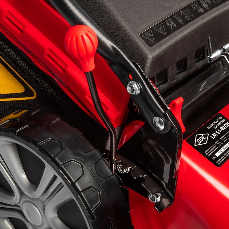 Газонокосилка DDE LM 51-60 DH обладает рядом функций, которые обеспечивают комфорт и удобство во время работы. Регулируемая высота кошения позволяет выбрать оптимальную высоту среза для вашего газона. Это особенно важно при работе на неровной поверхности или при необходимости изменить высоту среза в зависимости от сезона.