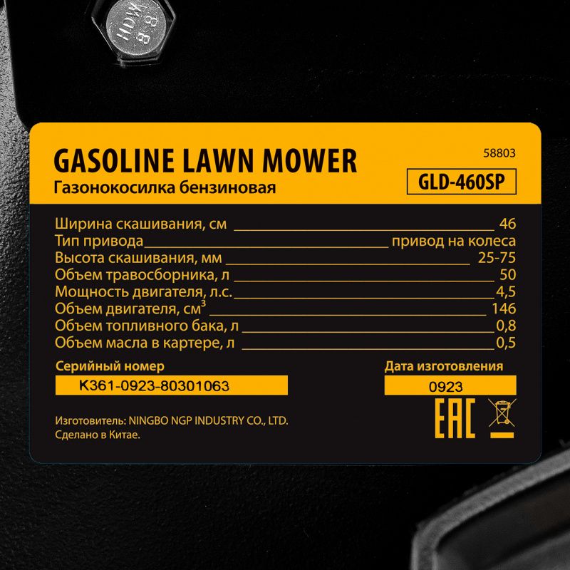 Газонокосилка бензиновая Denzel GLD-460SP, 58803: мощность и комфорт