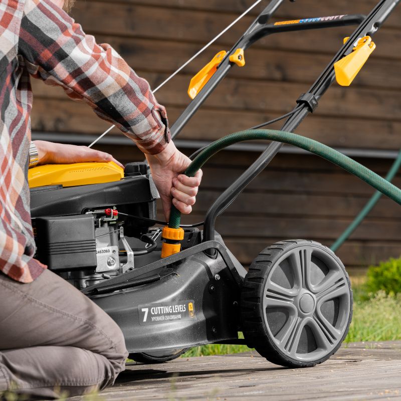 Одной из главных особенностей газонокосилки является ее мощность. Благодаря надежному бензиновому двигателю мощностью 4.5 л.с., эта модель легко справляется с самыми сложными задачами. Вы сможете подстригать газон даже на больших участках без перерывов и задержек.