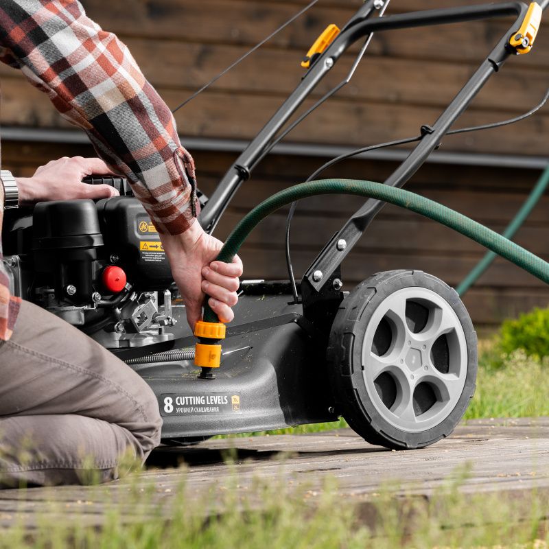 Бензиновая газонокосилка изготовлена из высококачественных материалов, что обеспечивает ее надежность и долговечность. Вы можете быть уверены, что данная модель прослужит вам долгие годы, сохраняя свои функциональные и эстетические характеристики.