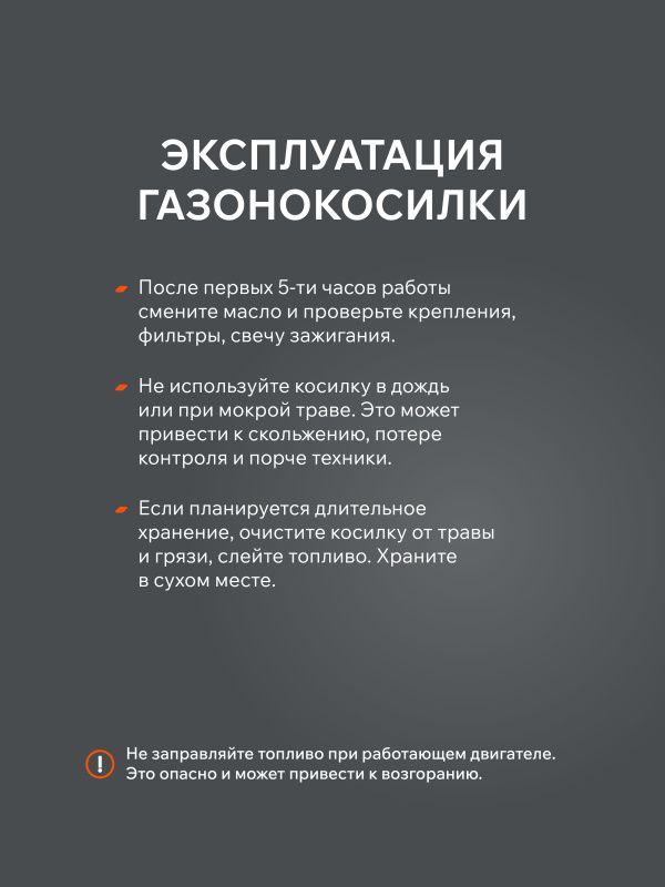 - Высокая производительность. Благодаря мощному двигателю и эффективной системе сбора травы, газонокосилка позволяет быстро и легко ухаживать за газоном любой площади.
