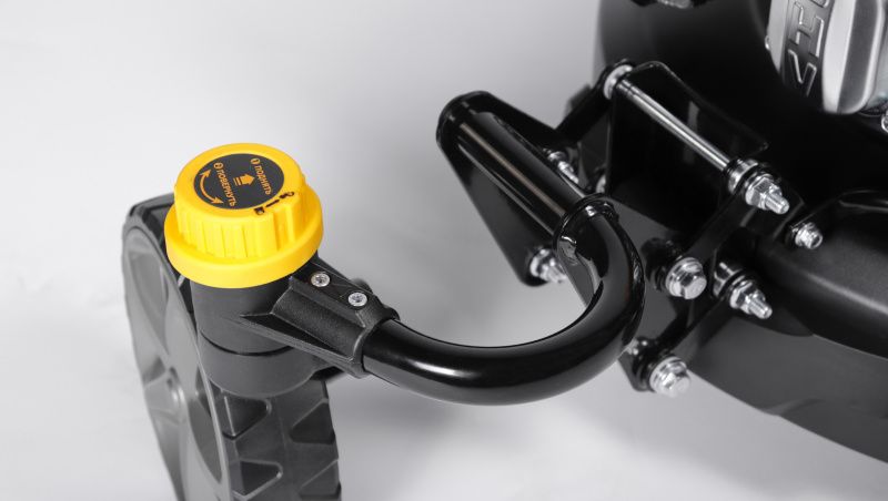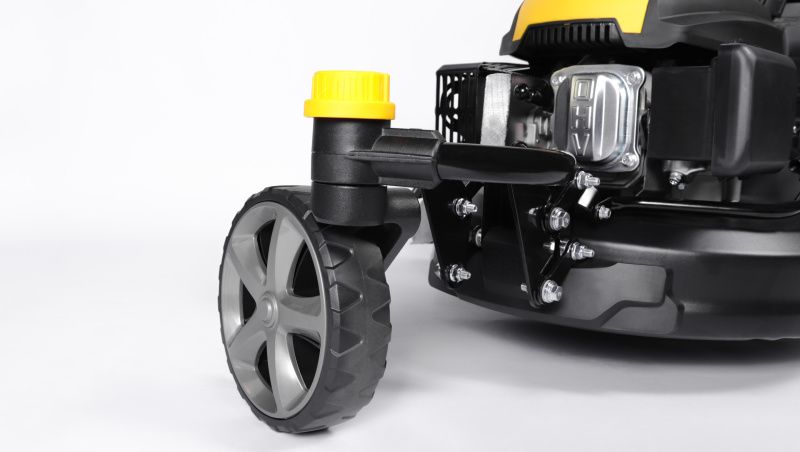 Главная особенность газонокосилки - передние вращающееся (рояльное) колесо. Удобное маневрирование, поворот вправо-влево. Уменьшает нагрузку на руки.