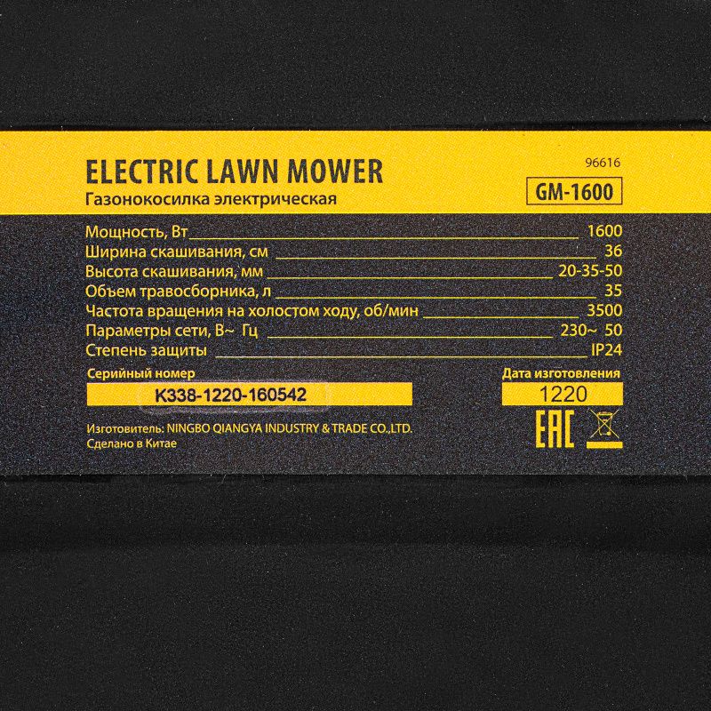 Газонокосилка электрическая Denzel GM-1600, 96616