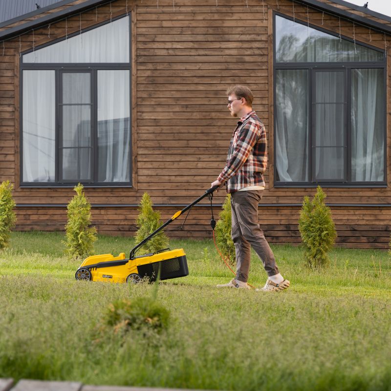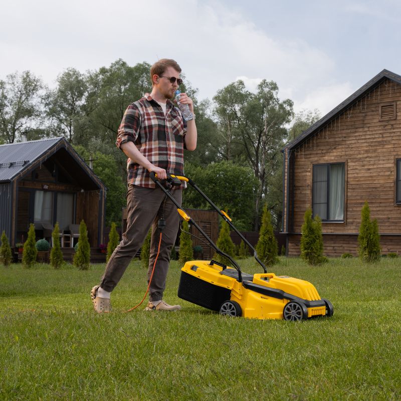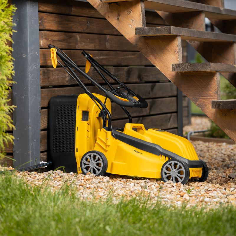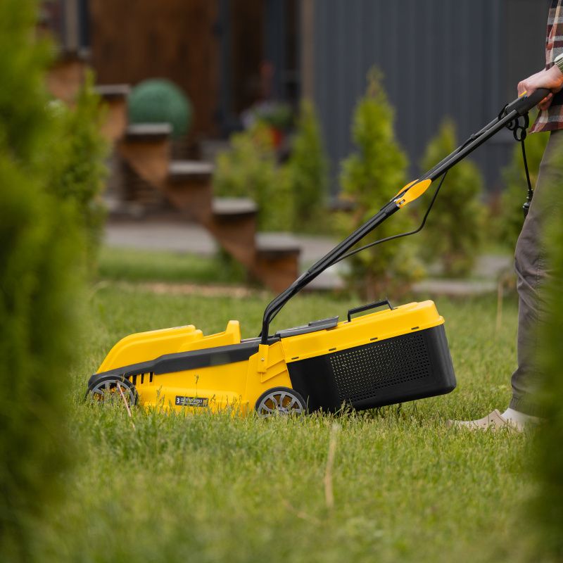 Мобильность. Благодаря компактным размерам и небольшому весу, газонокосилку легко перемещать по участку. Это особенно удобно при работе на больших площадях.