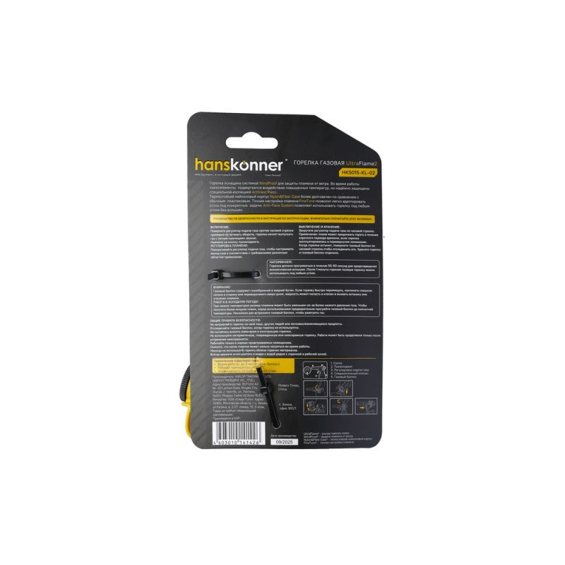 Горелка газовая, пьезоподжиг, керамика в сопле, защита от вспышек, hanskonner, HK5015-KL-02