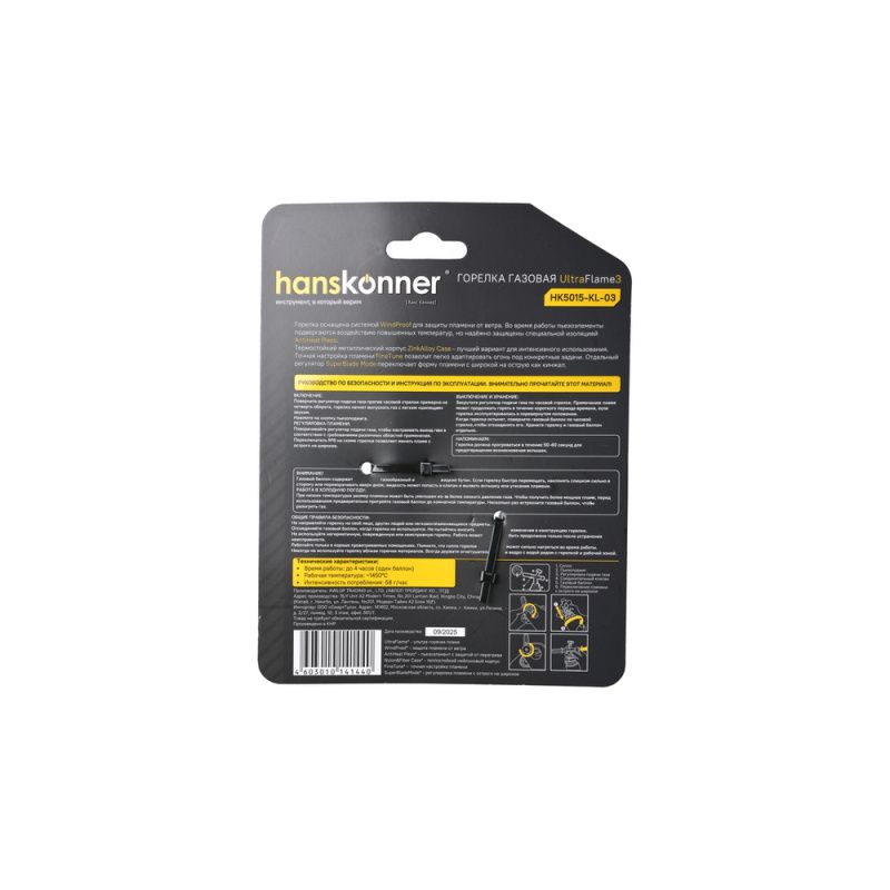 Горелка газовая, пьезоподжиг, регулировка остроты пламени, цинковый корпус, hanskonner, HK5015-KL-03