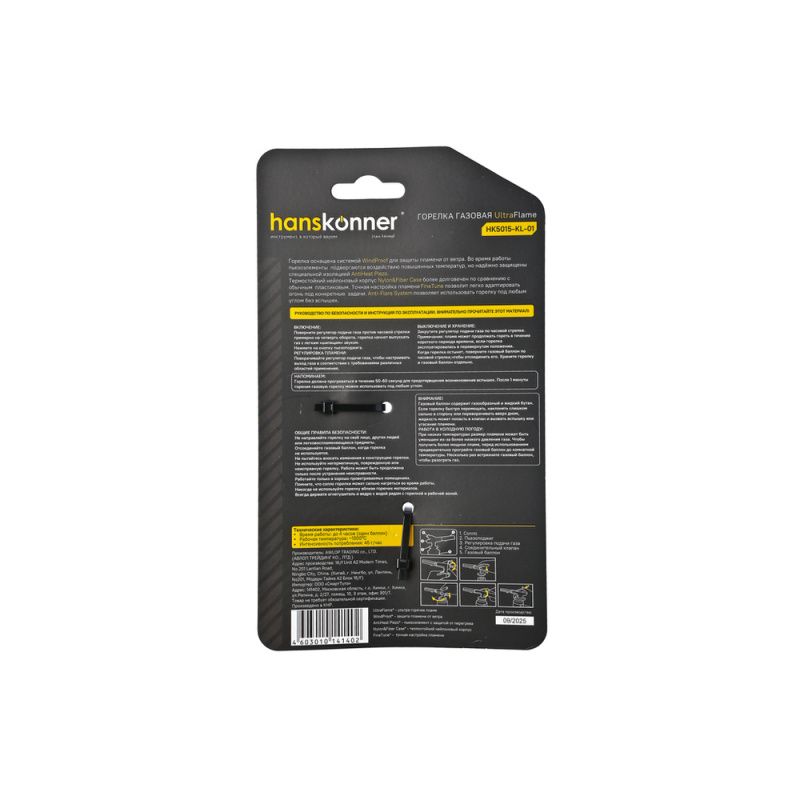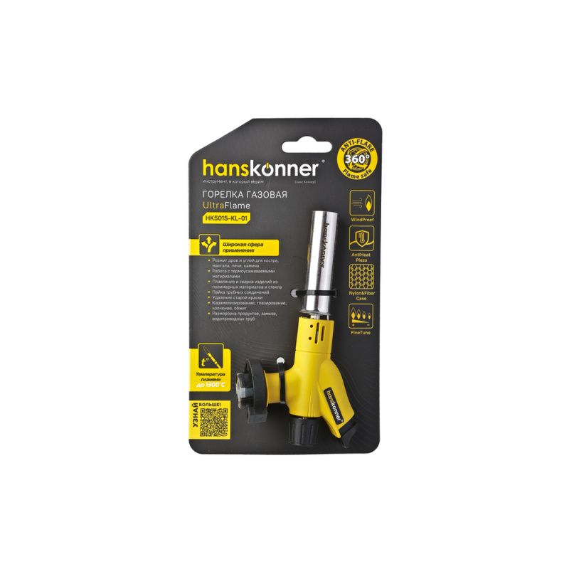 Горелка газовая, пьезоподжиг, защита от вспышек, hanskonner, HK5015-KL-01