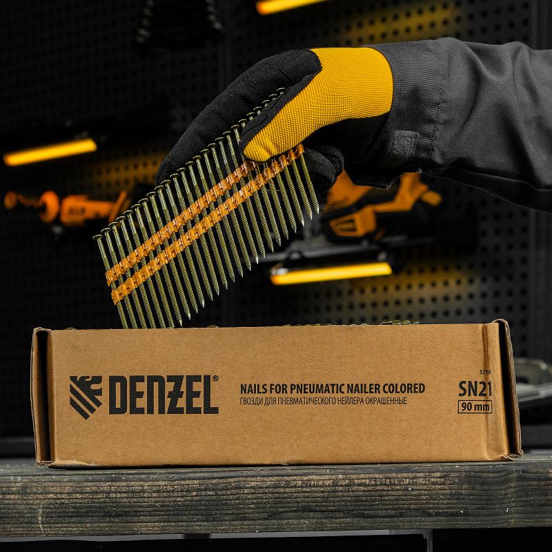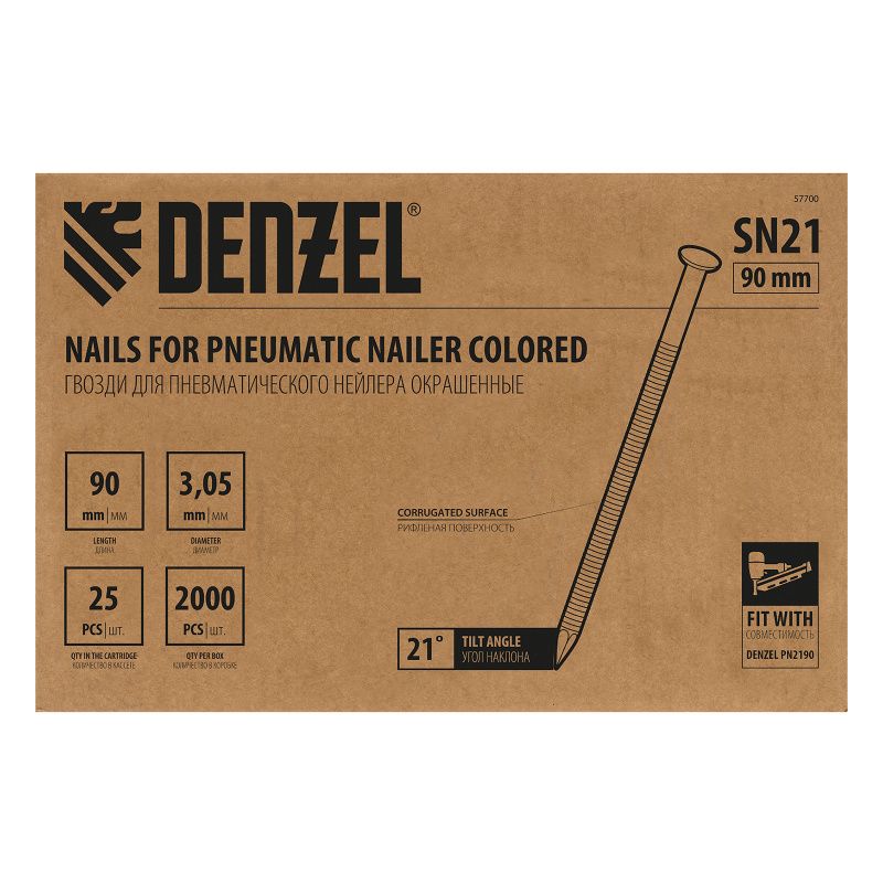 Гвозди для пнев. нейлера (крашен.), длина - 90 мм, диам. - 3,05 мм, 2000 шт. Denzel, 57700