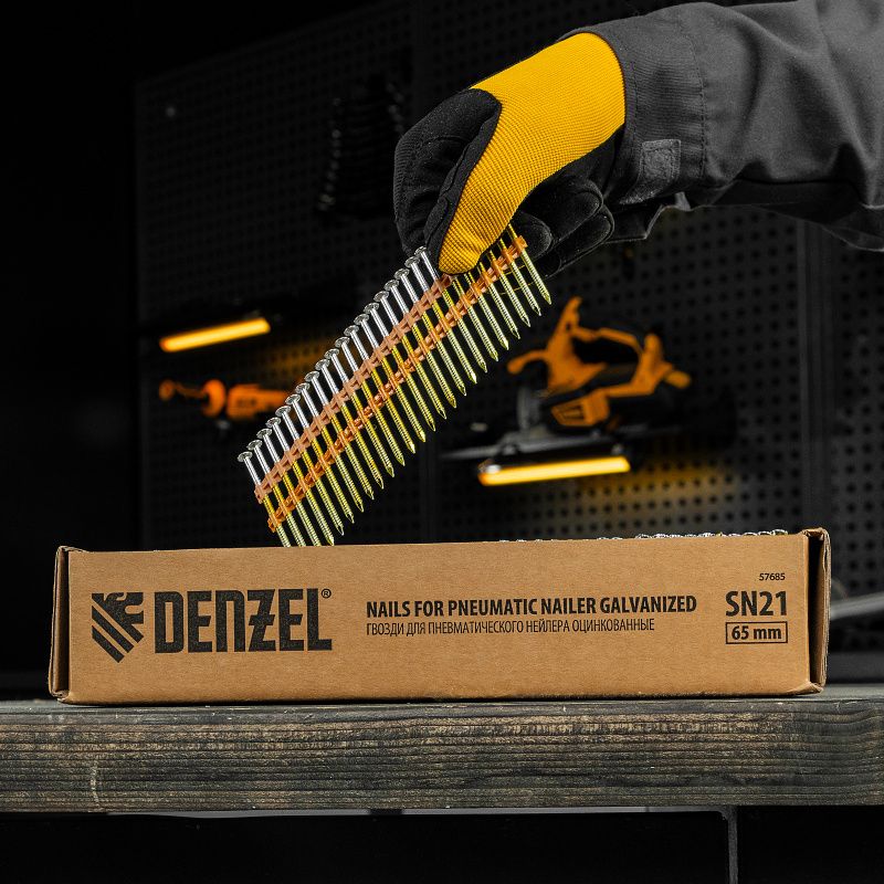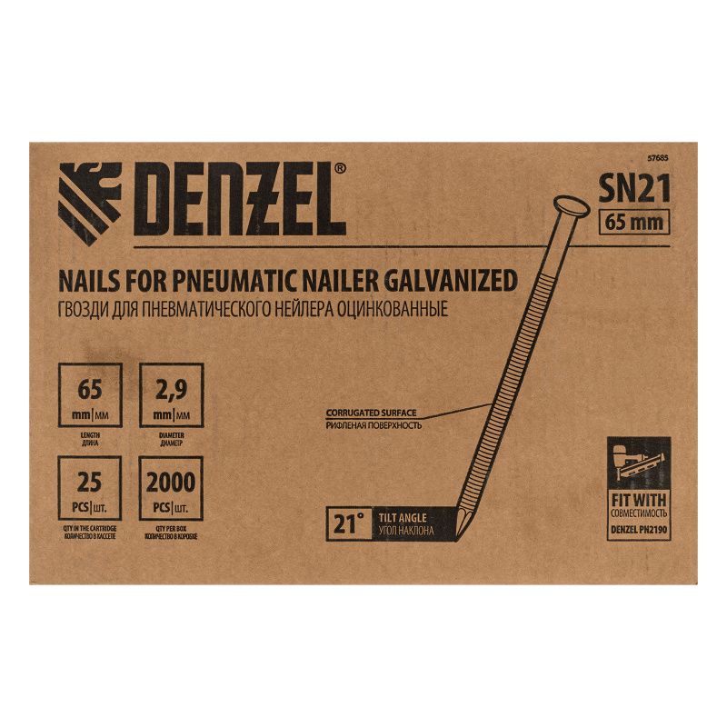 Гвозди для пнев. нейлера (оцинк.), длина - 65 мм, диам. - 2,9 мм, 2000 шт. Denzel, 57685