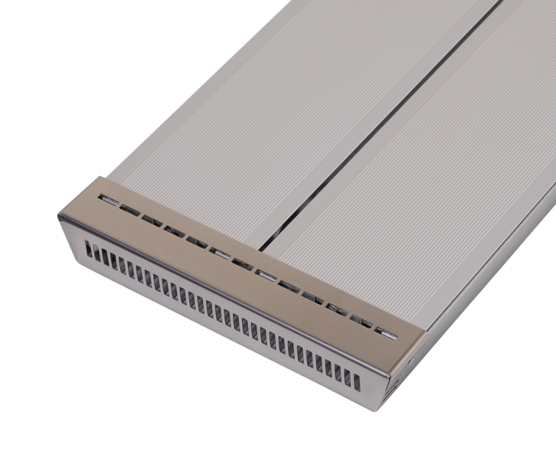 Алюминиевая излучающая панель установлена в термоизолированном стальном корпусе, что делает прибор более прочным и безопасным при использовании.