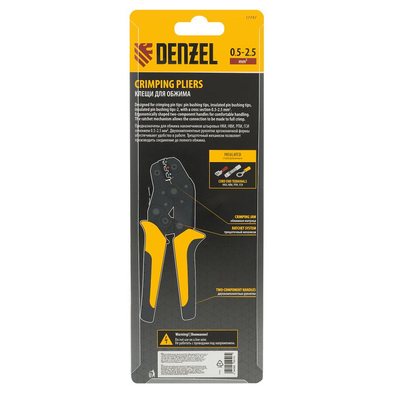 Клещи для обжима изолир. наконечников НКИ и НВИ, разъемов РПИ, гильз ГСИ, 0,5 - 2,5 мм2 Denzel, 17747