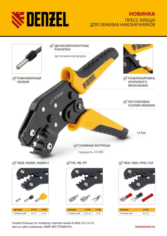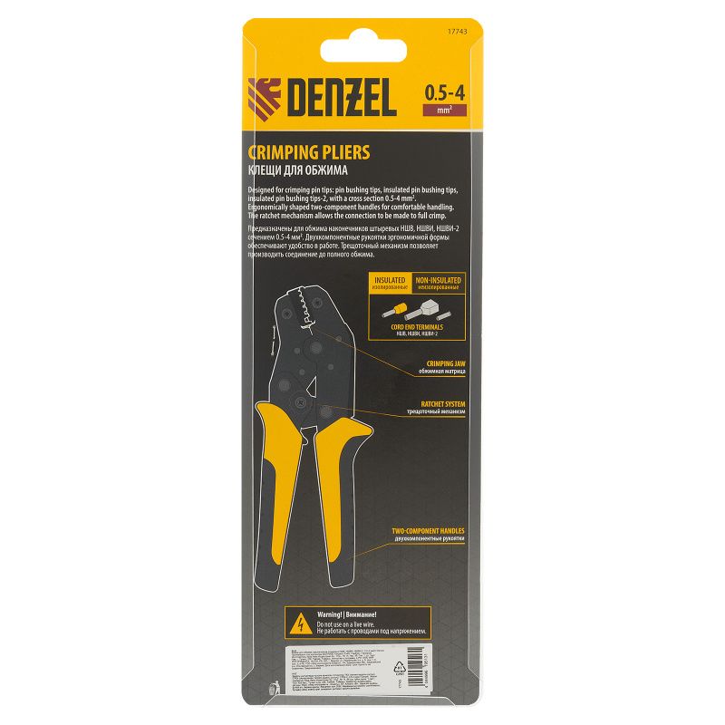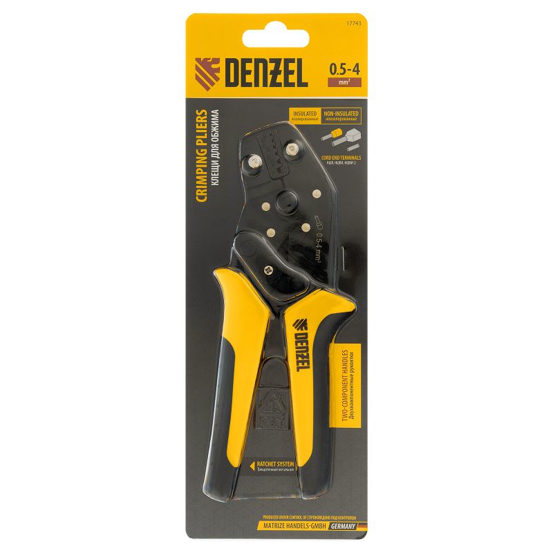 Клещи для обжима наконечников штыревых НШВ, НШВИ, НШВИ-2, 0,5-4 мм2 Denzel, 17743