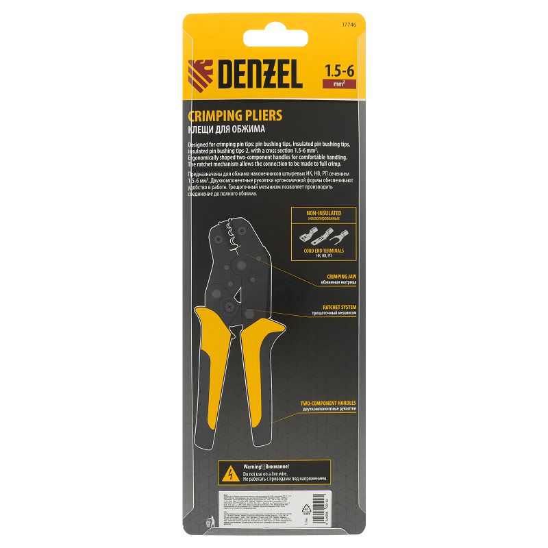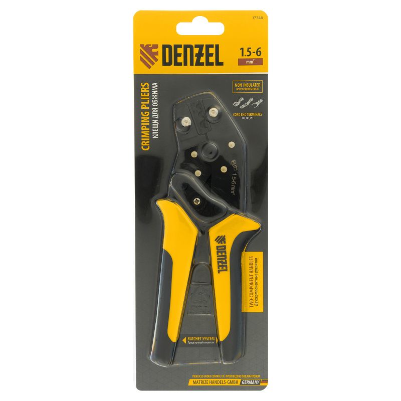 Клещи для обжима неизолированных наконечников НК и НВ, разъемов РП, 1,5 - 6 мм2 Denzel, 17746