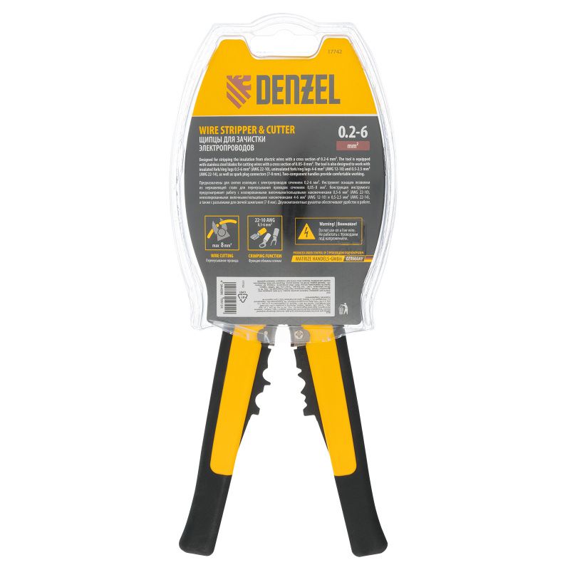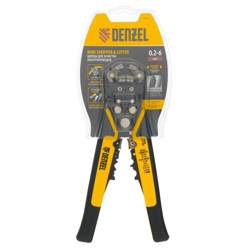 Щипцы для зачистки электропроводов 0,2-6 мм², функция обрезания проводов Denzel, 17742