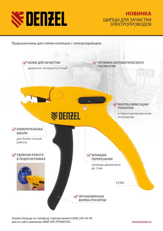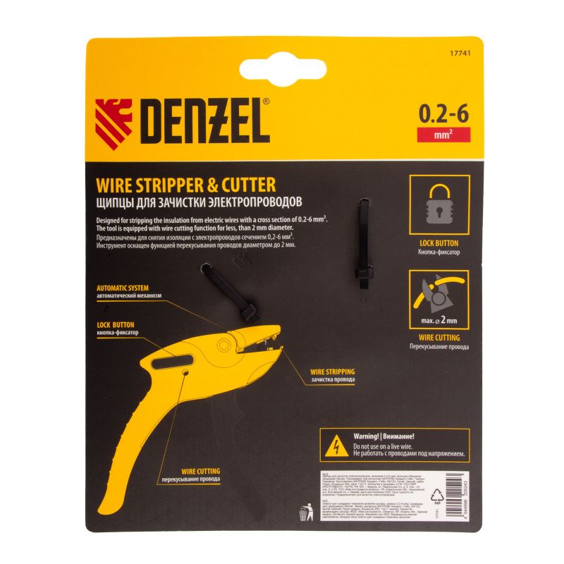 Щипцы для зачистки электропроводов, сечением 0,2-6 мм2, функция обрезания проводов Denzel, 17741