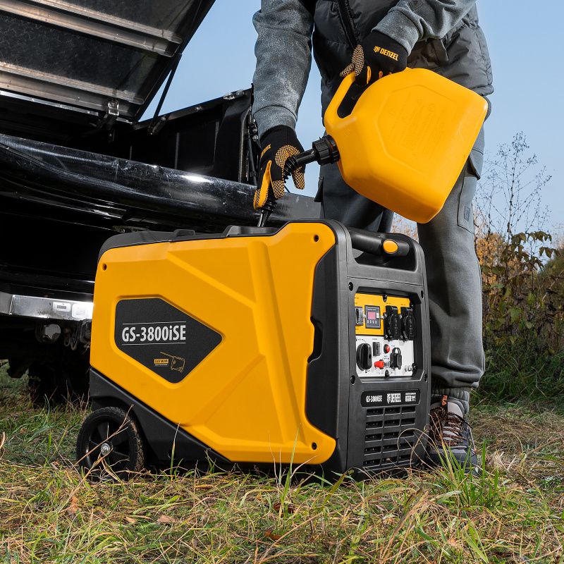 Мощность генератора составляет 3800 ватт, что позволяет подключать к нему не только бытовую технику, но и инструменты с высоким энергопотреблением. Благодаря этому вы можете использовать его не только для освещения и работы с электроинструментами, но и для питания электрооборудования на строительных площадках, в кемпингах и на даче.