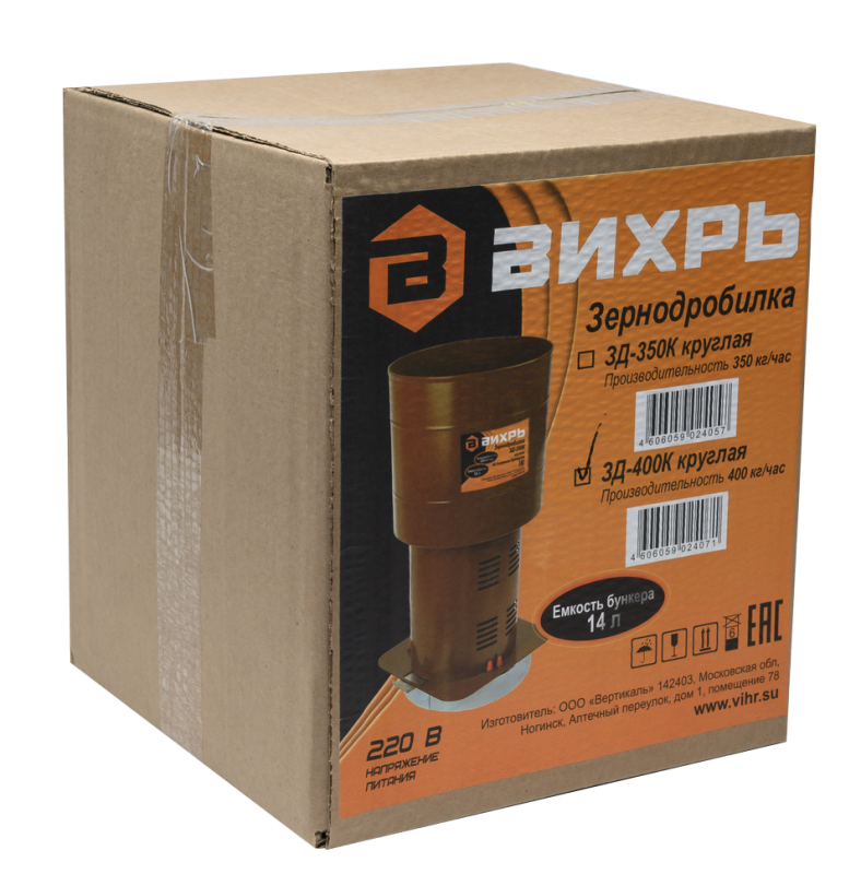 Зернодробилка ВИХРЬ ЗД-400К, 74/2/4