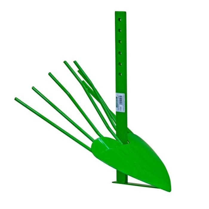 2. Простые (стрельчатые). Нижняя часть механизма напоминает лопату, к которой приварены толстые прутья. Острие подхватывает грунт и перемещает в расширяющиеся между собой прутья. Клубни успевают очиститься от земли и высыпаются на поверхность грядки. Устройство подходит к любым моделям мотоблоков, стоит недорого. Может использоваться дачниками и владельцами приусадебных участков.