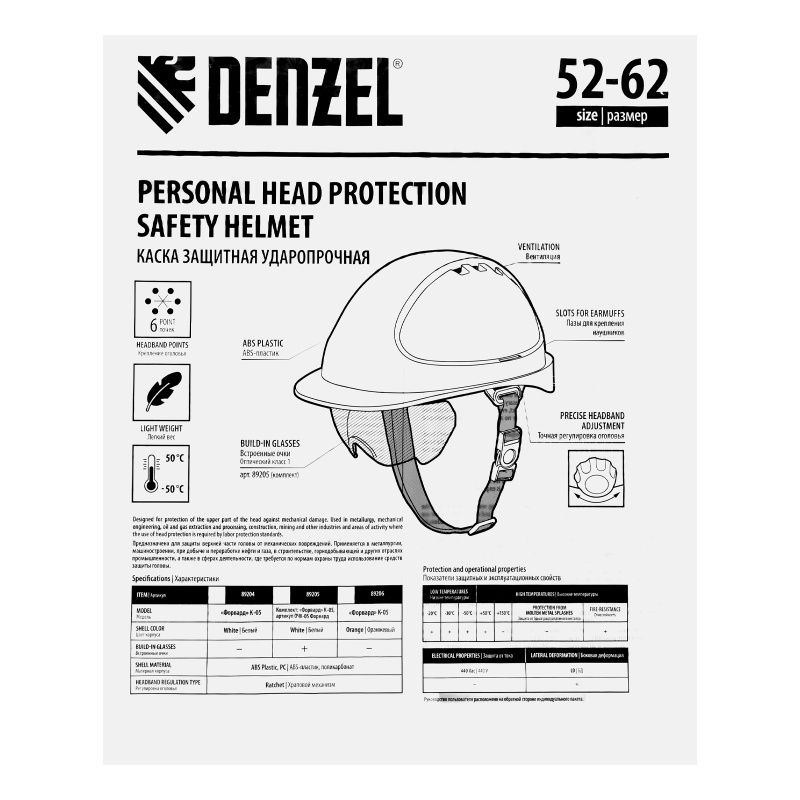 Каска защитная ударопр.«Форвард» (К-05)ABS/PC,комплект со встроен.очк.ОЧК-05 Форвард,белая Denzel, 89205
