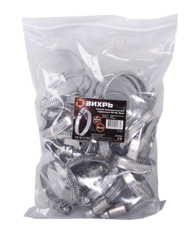 Хомуты металлические червячные Вихрь 25-40, 9мм, 25 шт., 73/9/1/24
