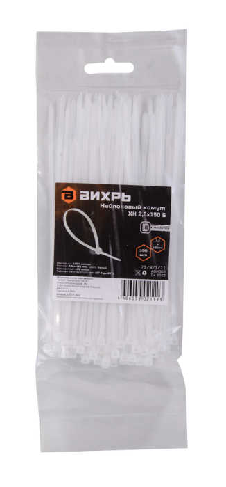 Хомуты нейлоновые (стяжки) белые 100 шт. Вихрь 2,5*150 Б, 73/9/1/11
