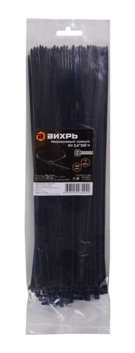 Хомуты нейлоновые (стяжки) черные 100 шт. Вихрь 3,6*300 Ч, 73/9/1/29