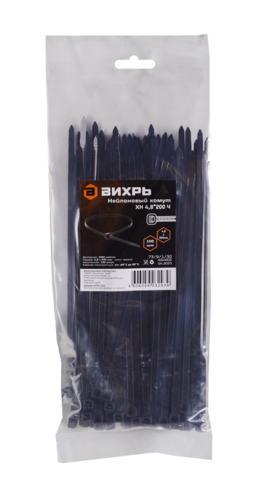 | Модель | Хомуты нейлоновые (стяжки) черные 100 шт. 4,8*200 Ч |