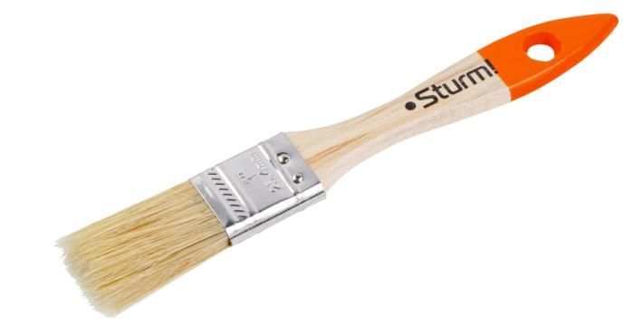 Кисть плоская "Практик" 1" (25мм), натуральная щетина, деревянная ручка, Sturm PROMO, 9040-21-025SP