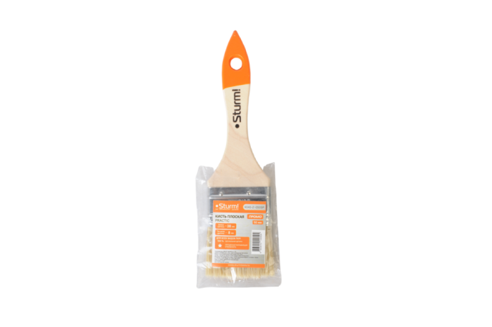 Кисть плоская "Практик" 2" (50мм), натуральная щетина, деревянная ручка, Sturm PROMO, 9040-21-050SP
