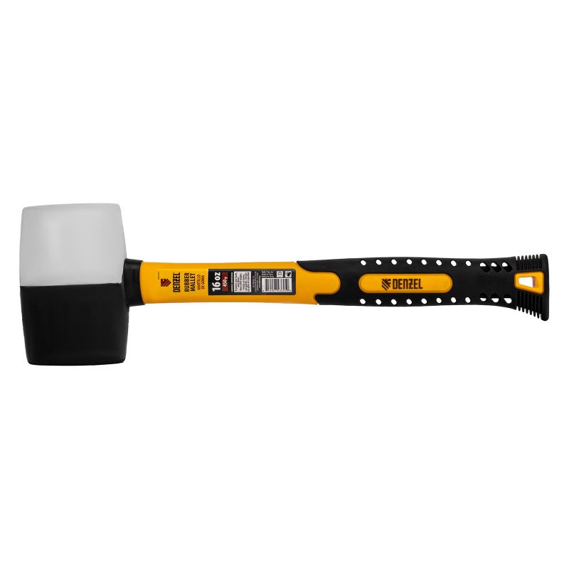 Киянка резиновая, 16 oz, черно-белая резина, фибергласовая рукоятка Denzel, 7711171