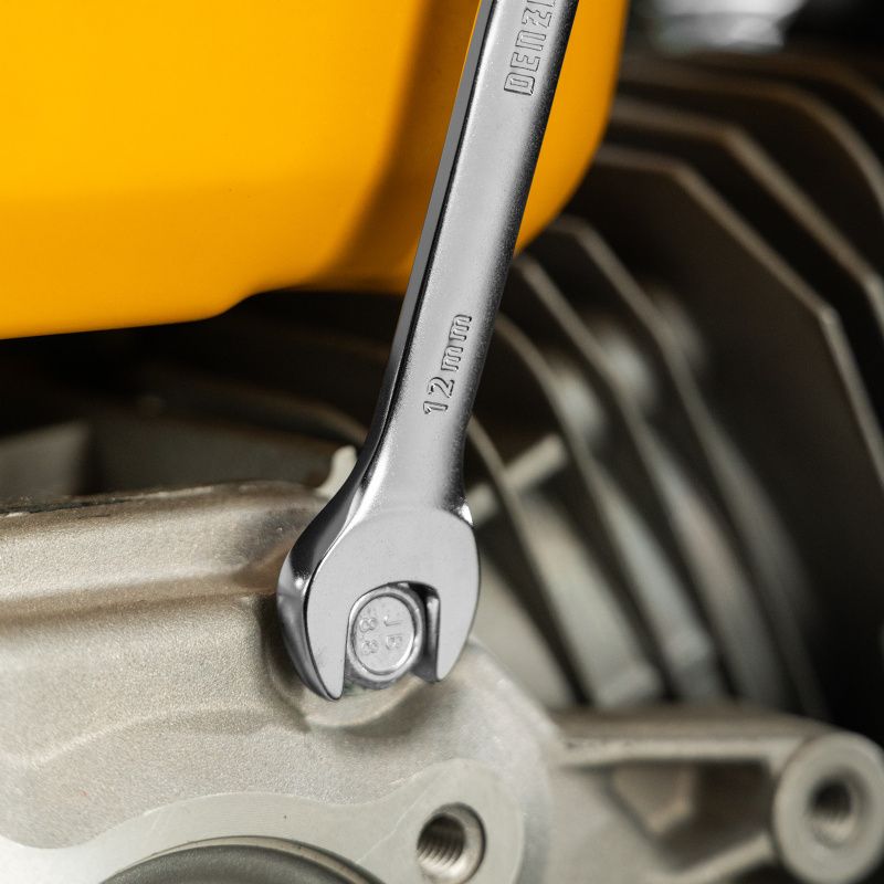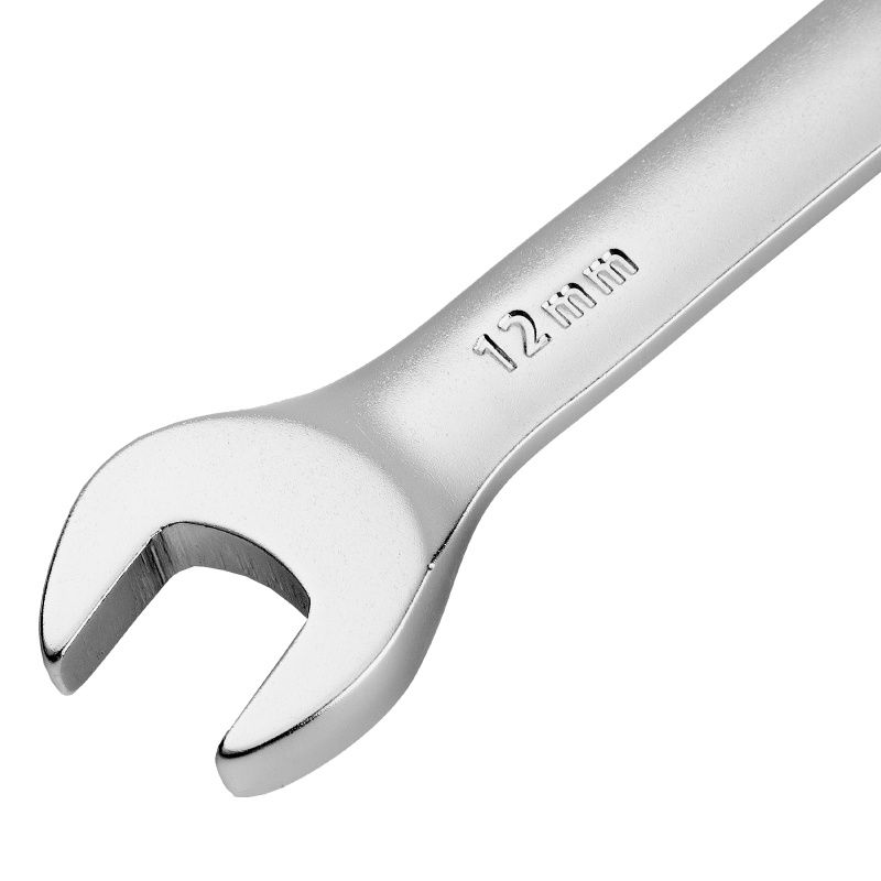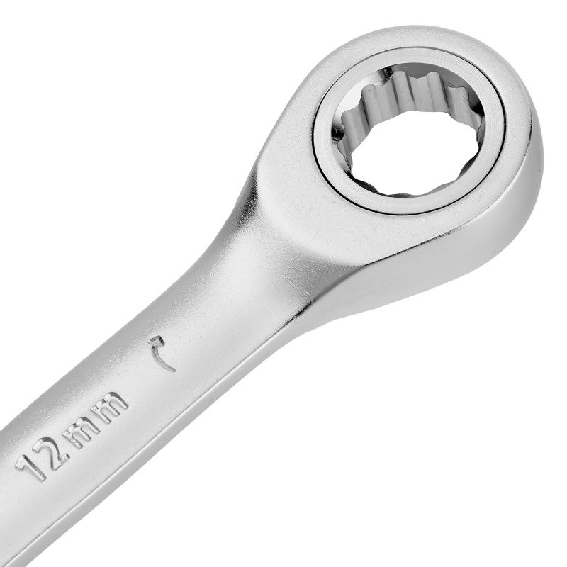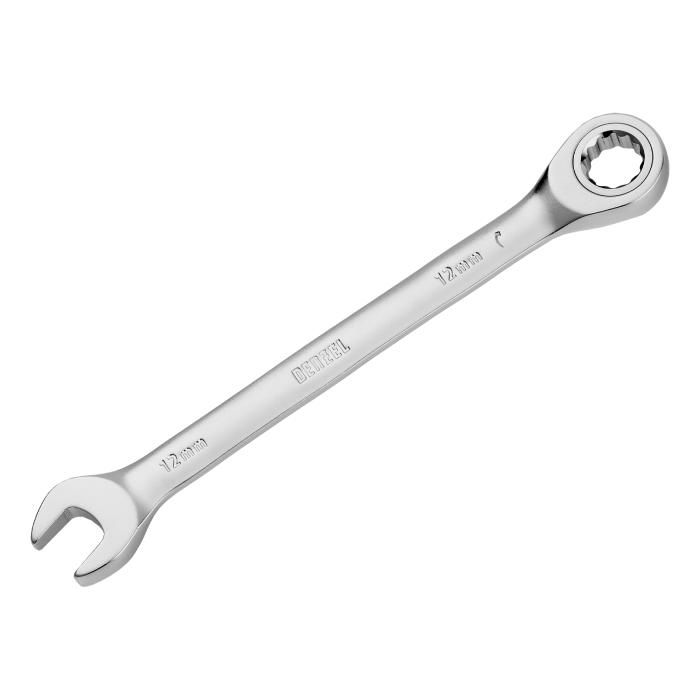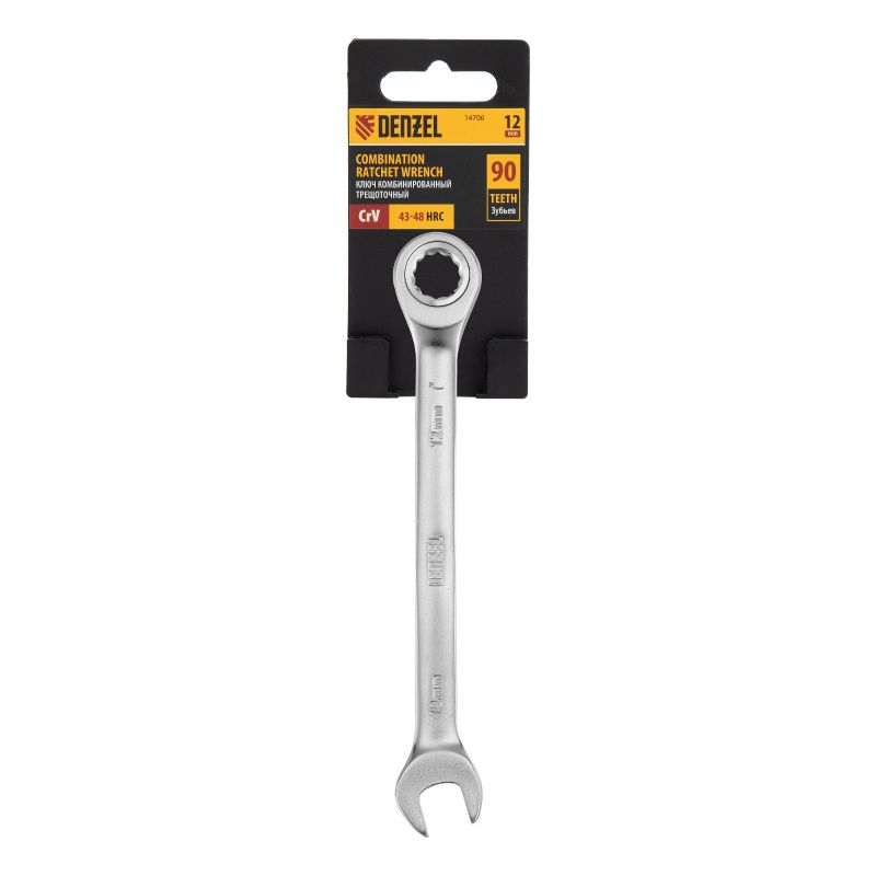 Ключ комбинированный трещоточный, 12 мм, CrV, матовый хром Denzel, 14706
