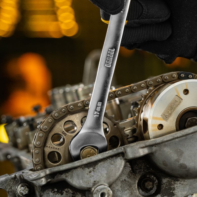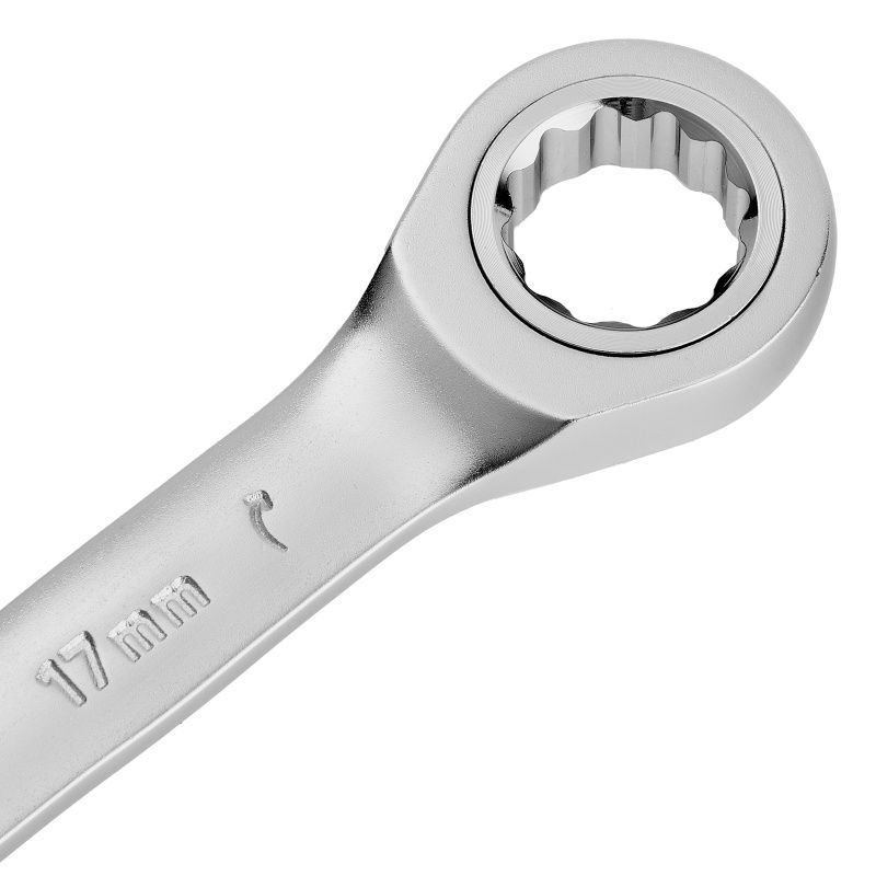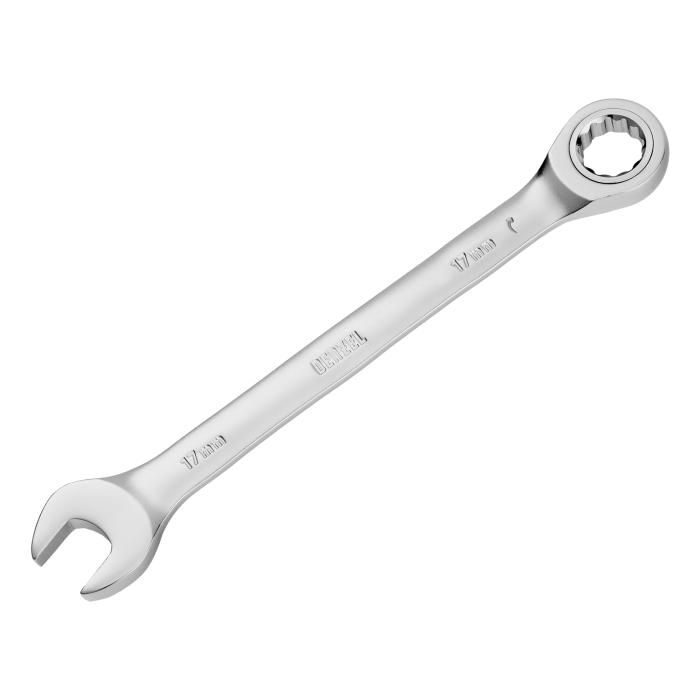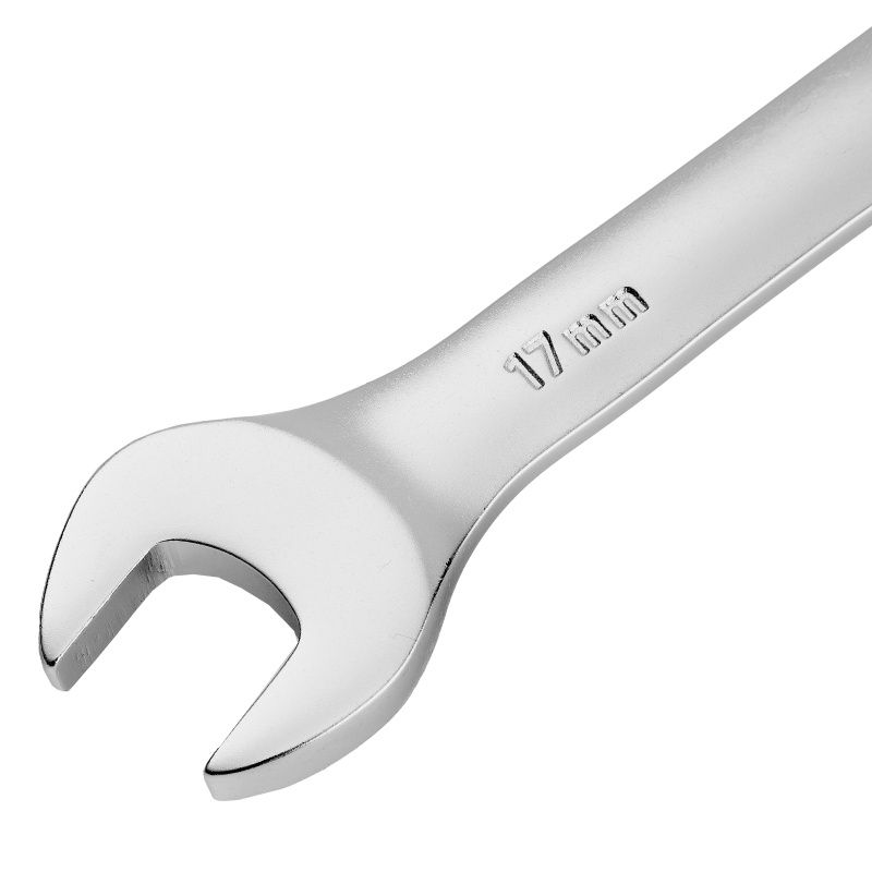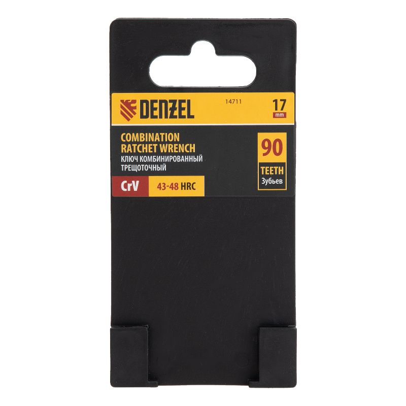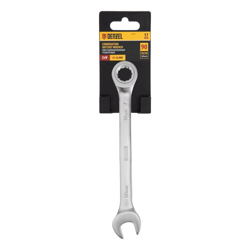 Ключ комбинированный трещоточный, 17 мм, CrV, матовый хром Denzel, 14711
