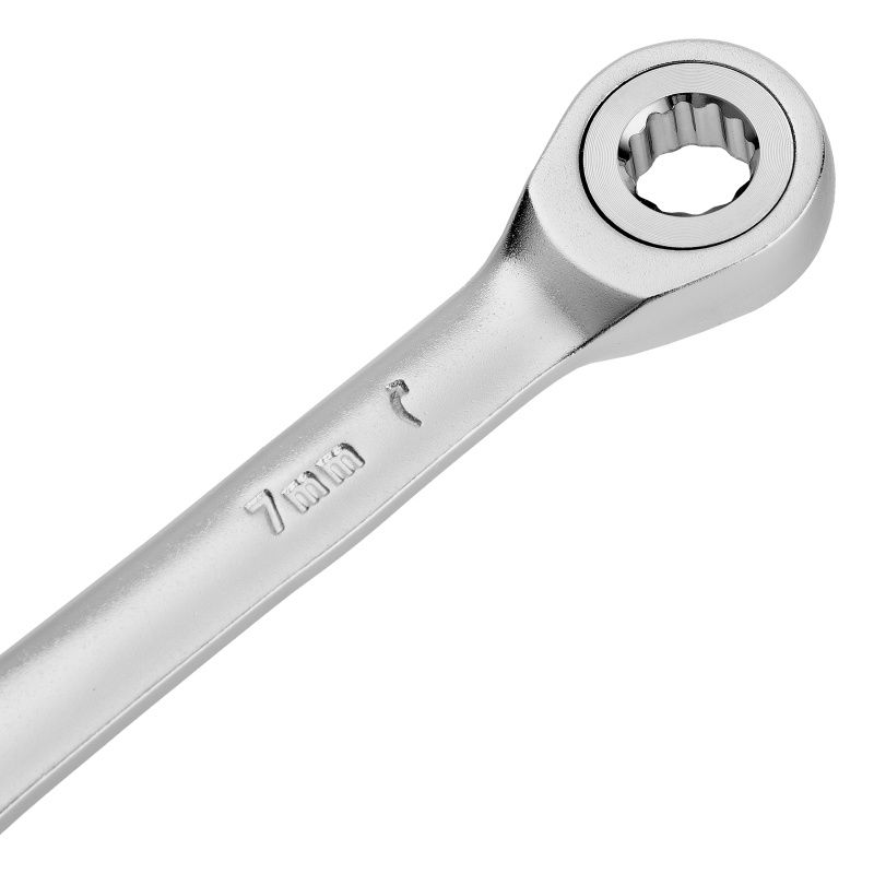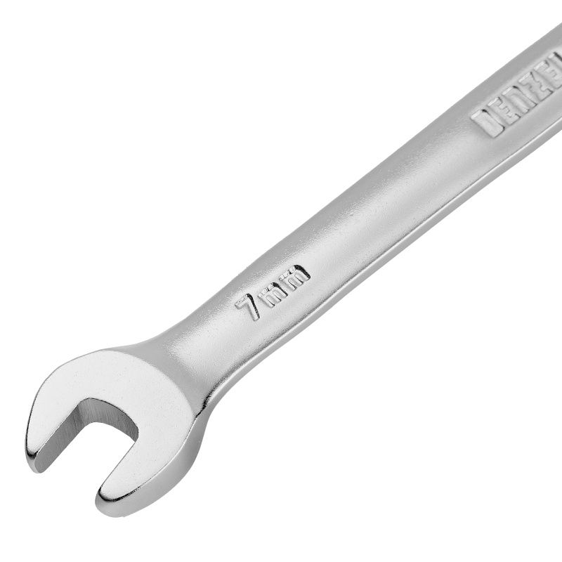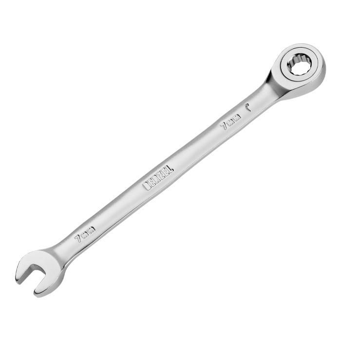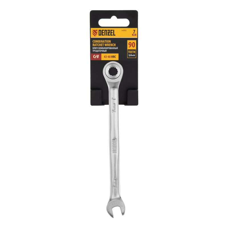 Ключ комбинированный трещоточный, 7 мм, CrV, матовый хром Denzel, 14701