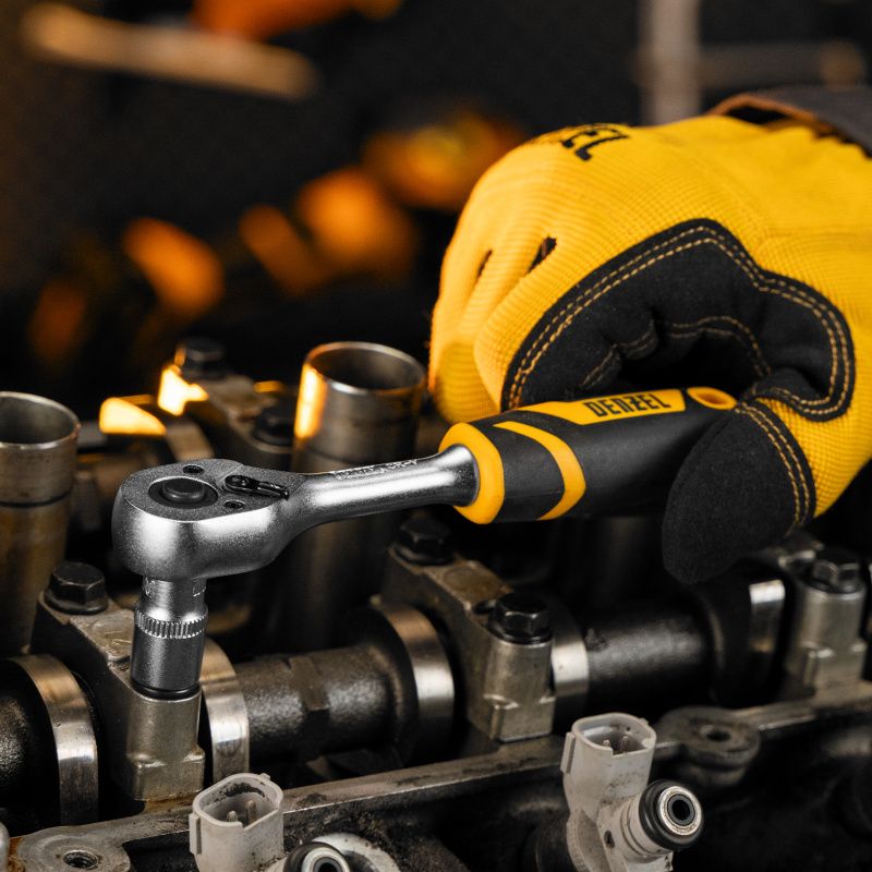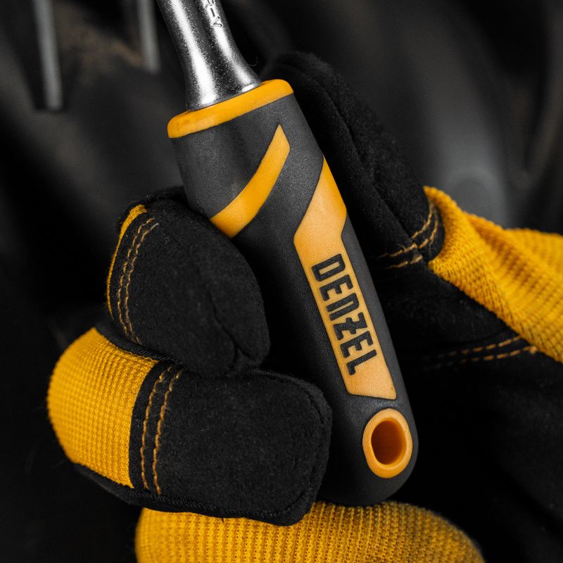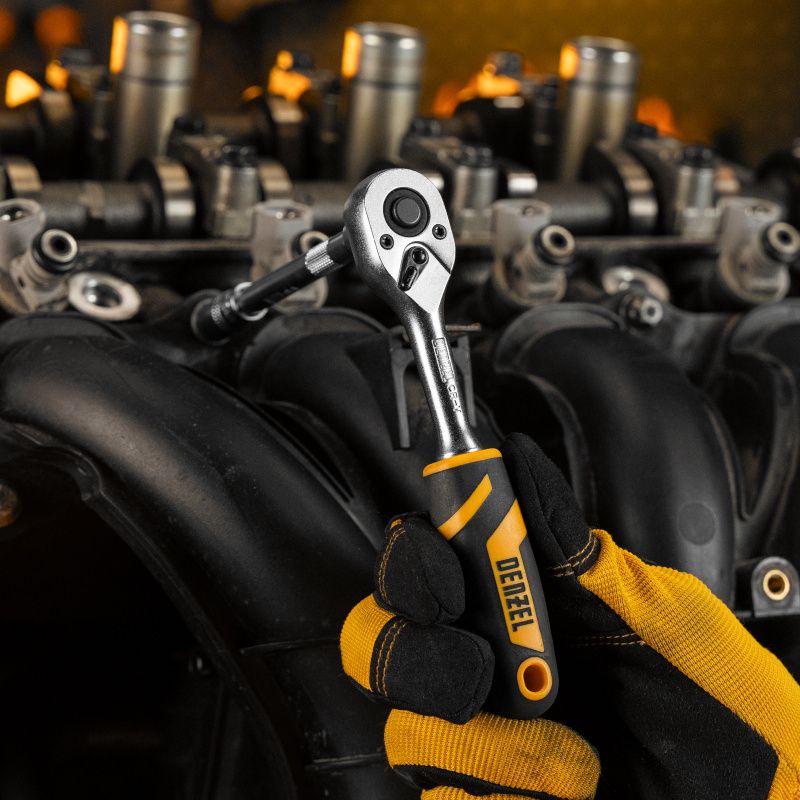 Ключ-трещотка 1/4", 90 зубьев, с быстрым сбросом, CrV Denzel, 14031