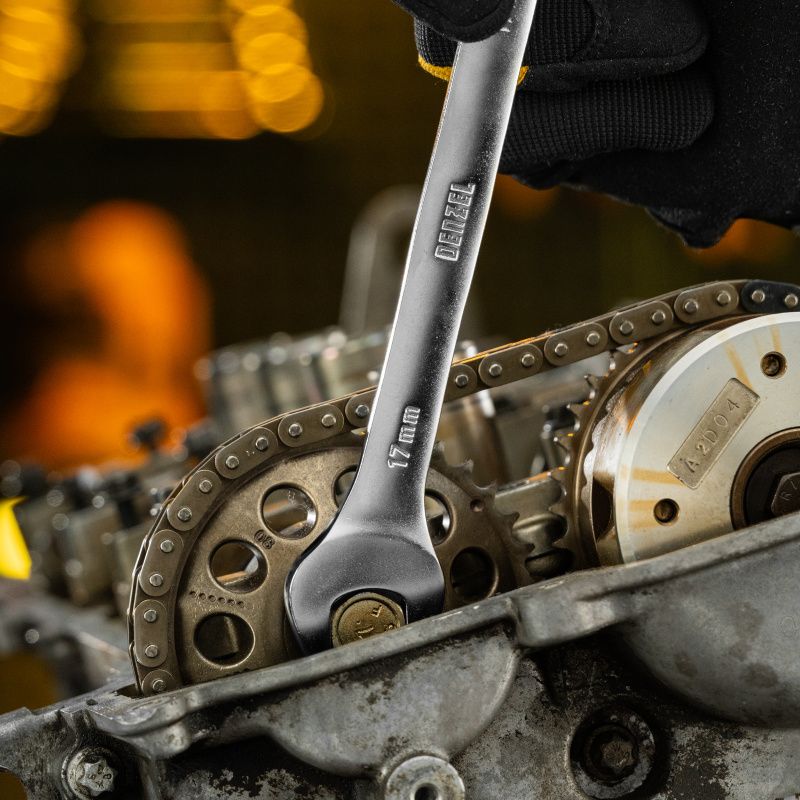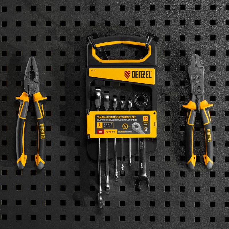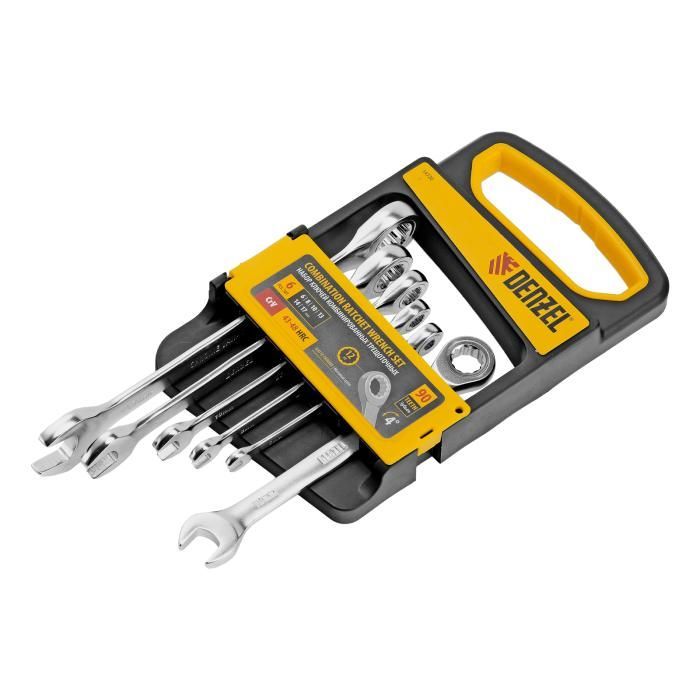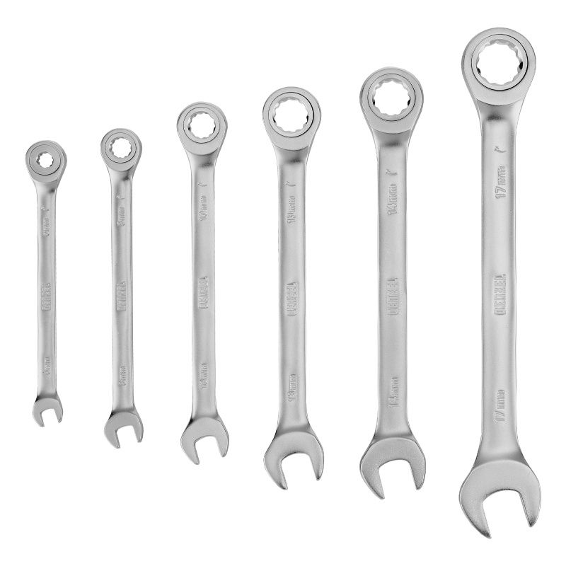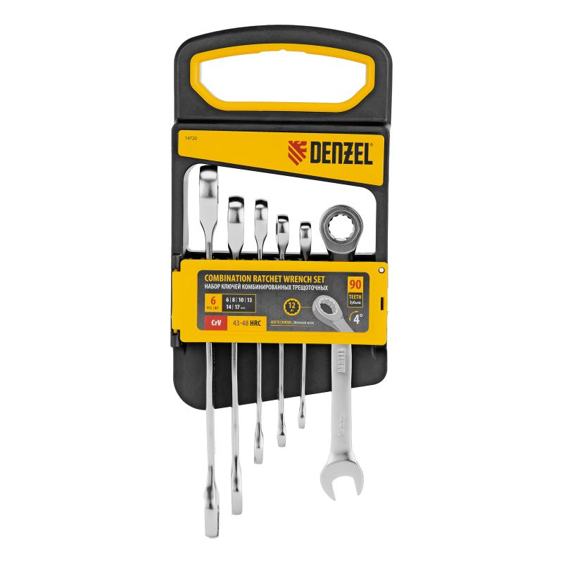 Набор ключей комбинированных трещоточных 6-17 мм, 6 шт., CrV, матовый хром Denzel, 14720
