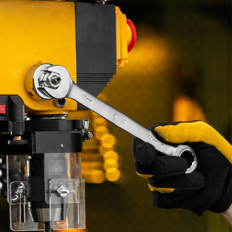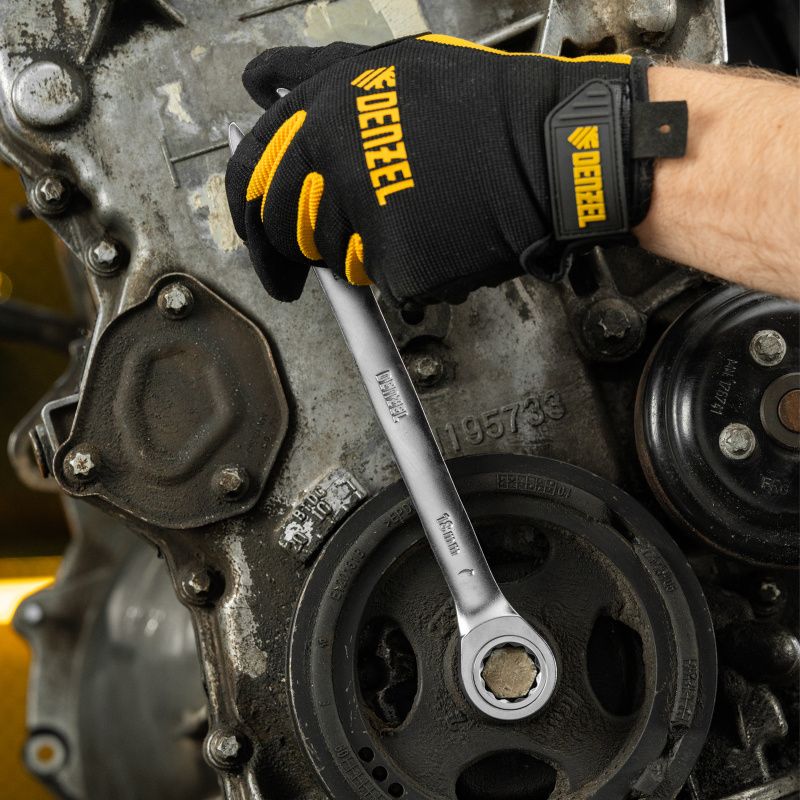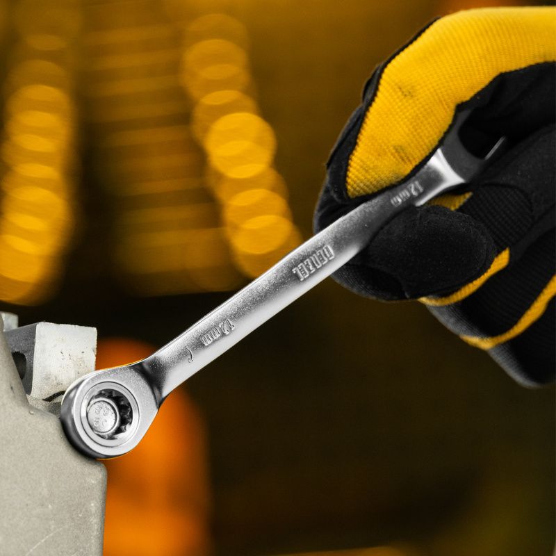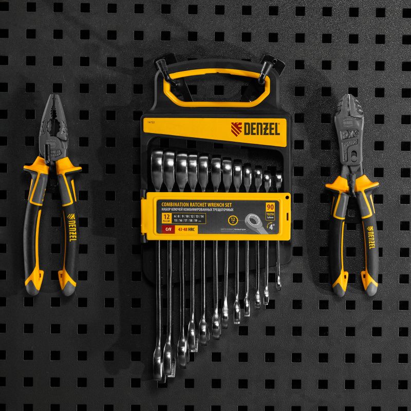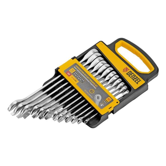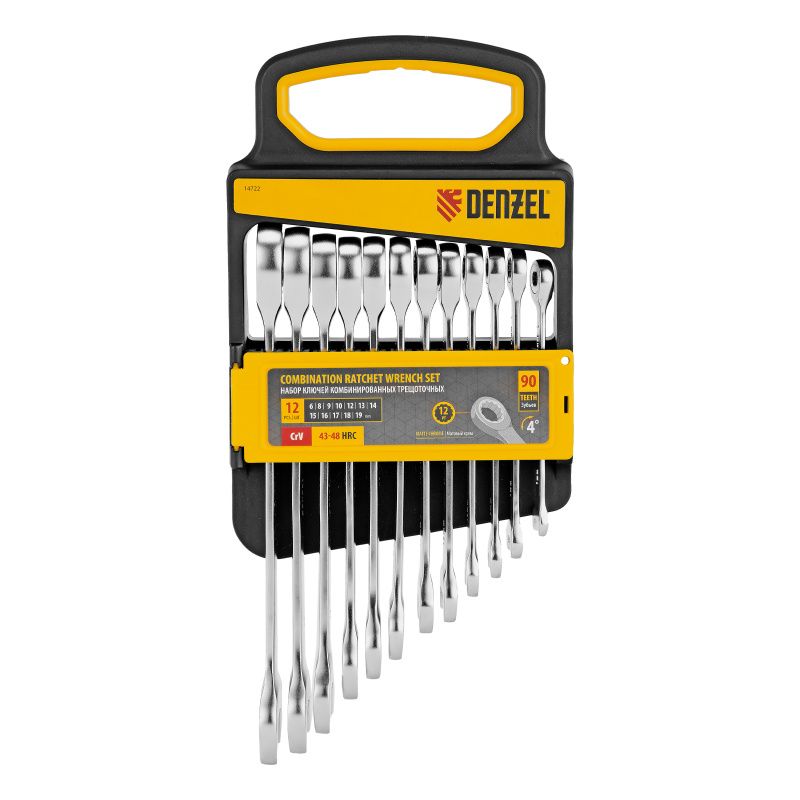 Набор ключей комбинированных трещоточных 6-19 мм, 12 шт., CrV, матовый хром Denzel, 14722