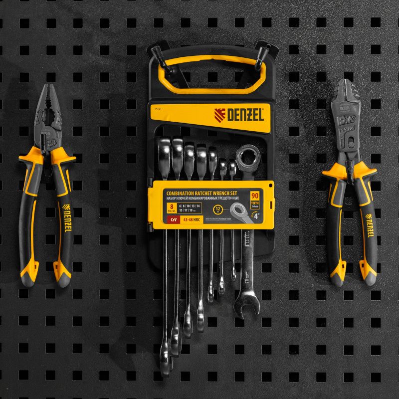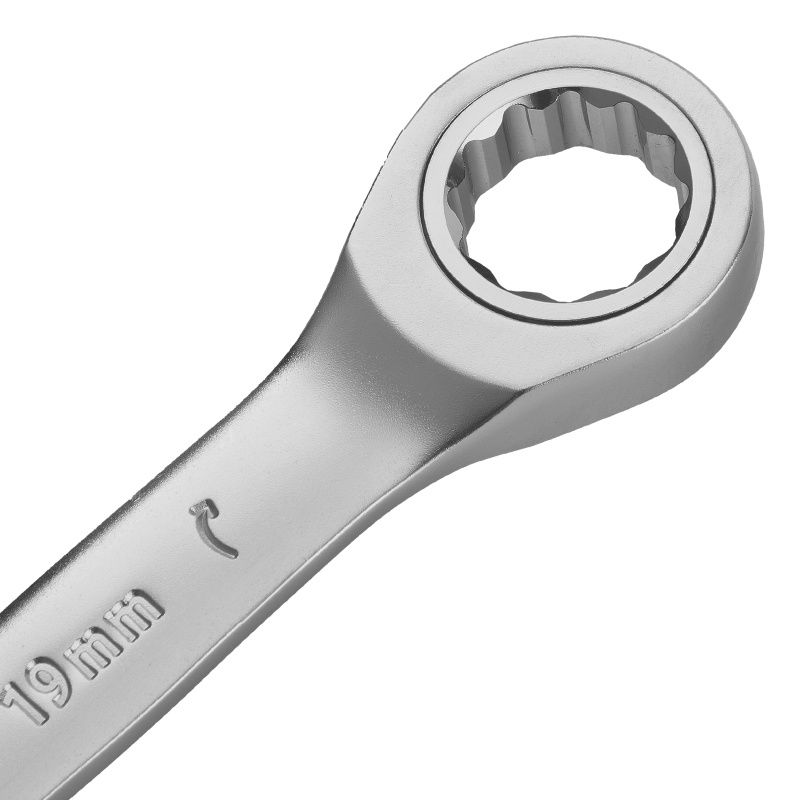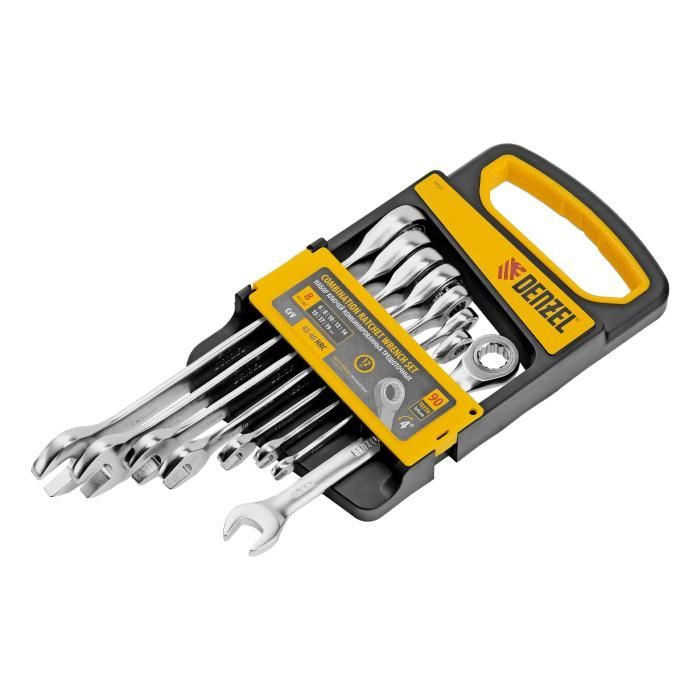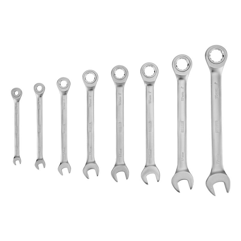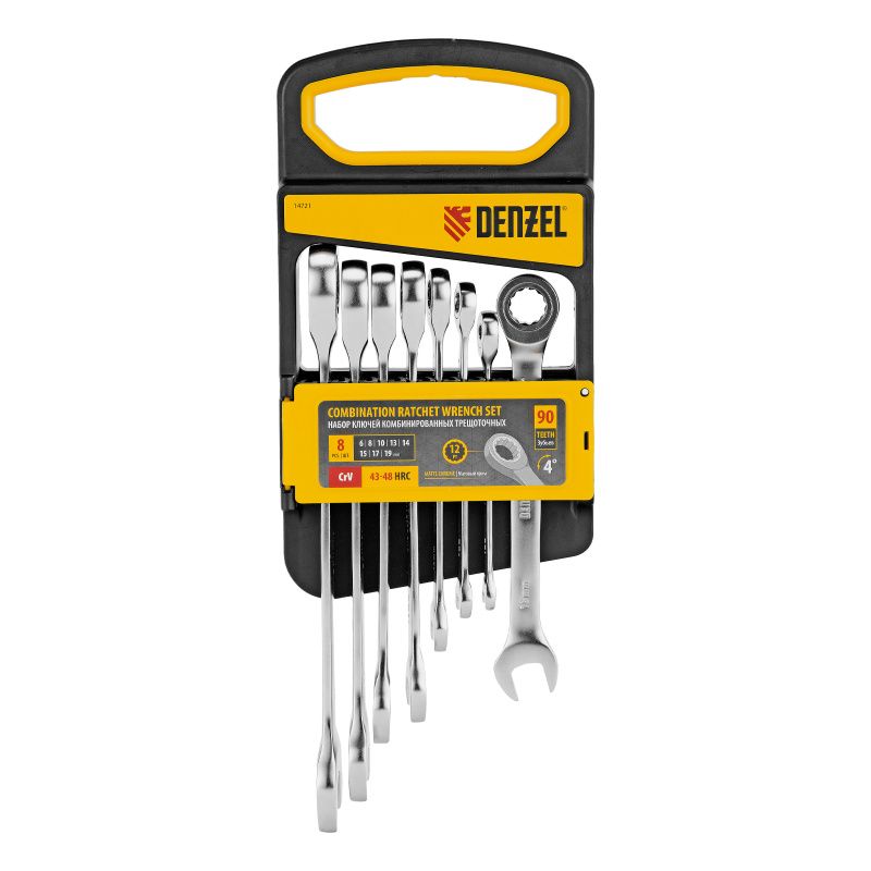 Набор ключей комбинированных трещоточных 6-19 мм, 8 шт., CrV, матовый хром Denzel, 14721