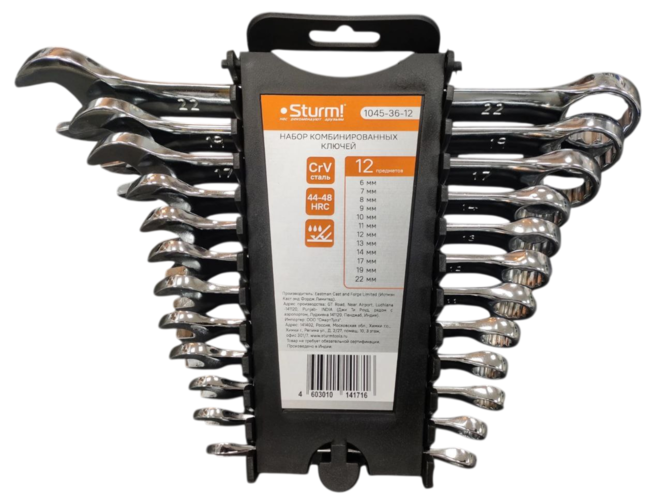Набор ключей комбинир. гаечных 12 пред 8-22мм (6-14,17,19,22) Cr-V, хромированный, Sturm, 1045-36-12