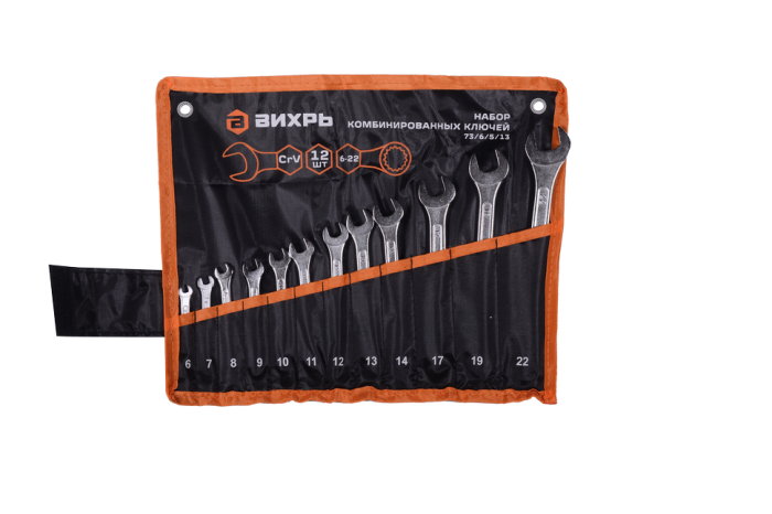 Набор комбинированных ключей Вихрь 12 шт. 6 - 22, в чехле, 73/6/5/13