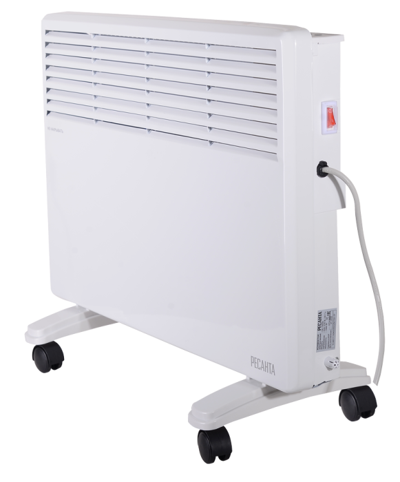 Электрический конвектор РЕСАНТА ОК-1500Е для обогрева помещений. Состоит из нагревательной части (ТЭН), заключенной в нижней части корпуса со щелеобразными отверстиями снизу и жалюзи в верхней части. Данная конструкция даёт возможность воздуху беспрепятственно проходить внутри конвектора, Модели конвекторов Ресанта серии ЕОтличием данной серии конвекторов является наличие электронного управления, точного электронного термостата, а также LED дисплея с возможностью отображения текущей температуры окружающей среды.