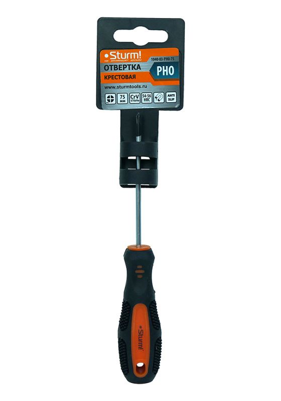 Отвертка крестовая PH0x75мм, CrV, магнитный наконечник Sturm, 1040-03-PH0-75