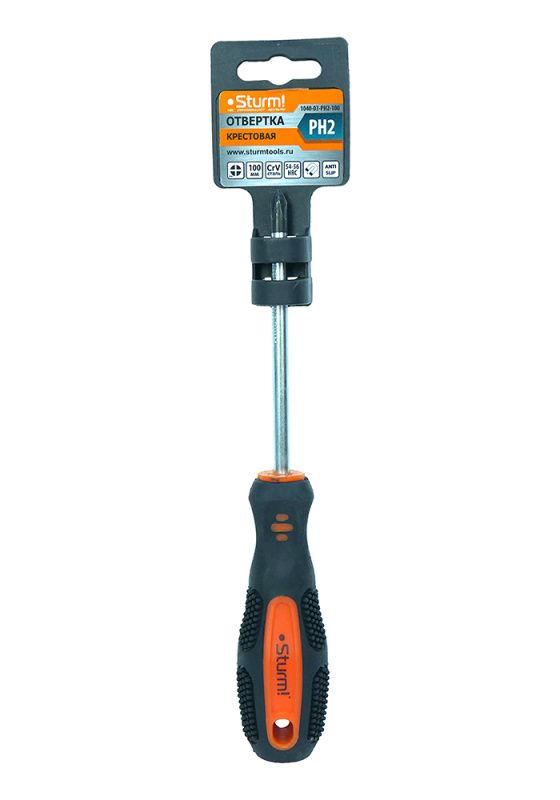 Отвертка крестовая PH2x100мм, CrV, магнитный наконечник Sturm, 1040-03-PH2-100