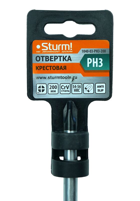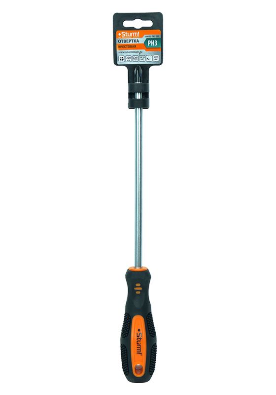 Отвертка крестовая PH3x200мм, CrV, магнитный наконечник Sturm, 1040-03-PH3-200