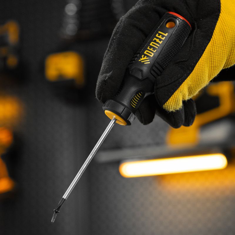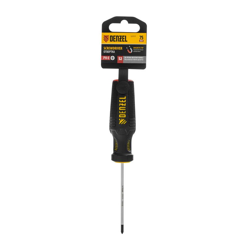 Отвертка, PH0х75 мм, S2, 3к рукоятка Denzel, 121717