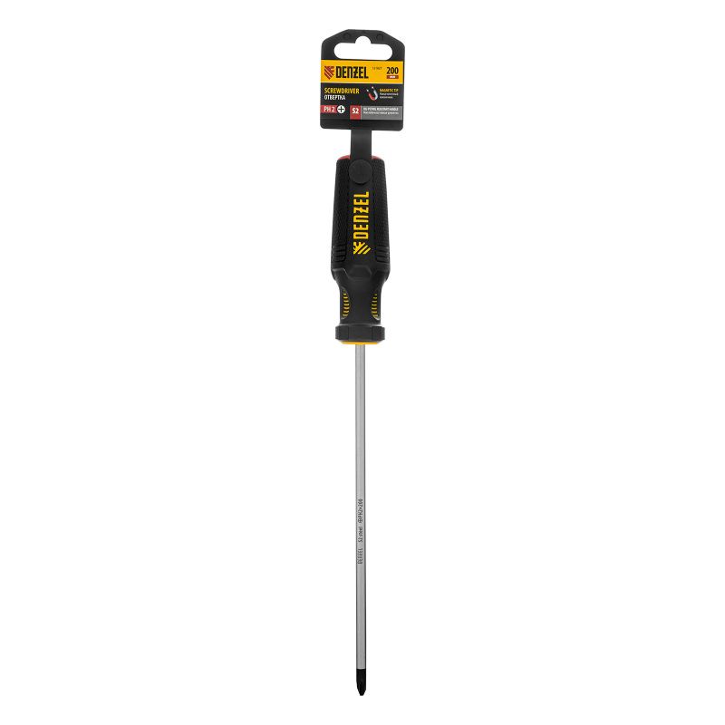 Отвертка, PH2х200 мм, S2, 3к рукоятка Denzel, 121827