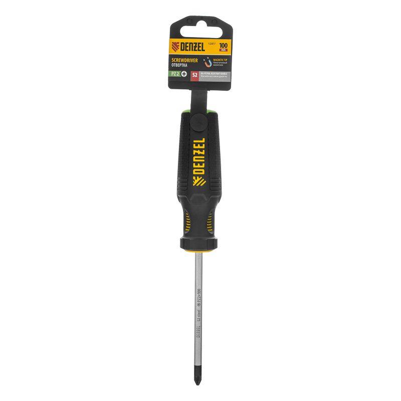 Отвертка, PZ2x100 мм, S2, 3к рукоятка Denzel, 122077