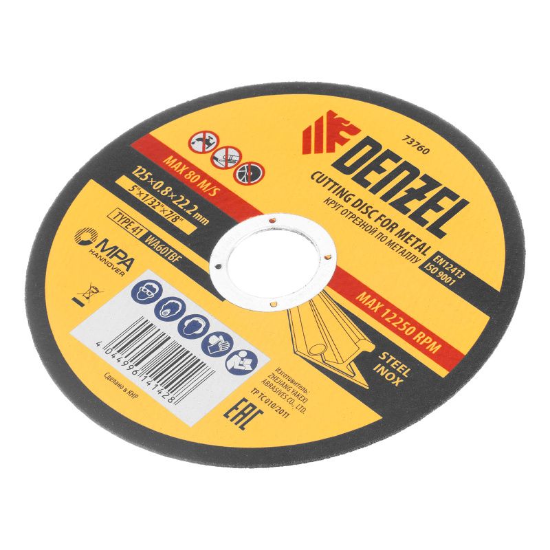 Круг отрезной по металлу, 125 х 0,8 х 22,2 мм, WA60TBF// Denzel, 73760