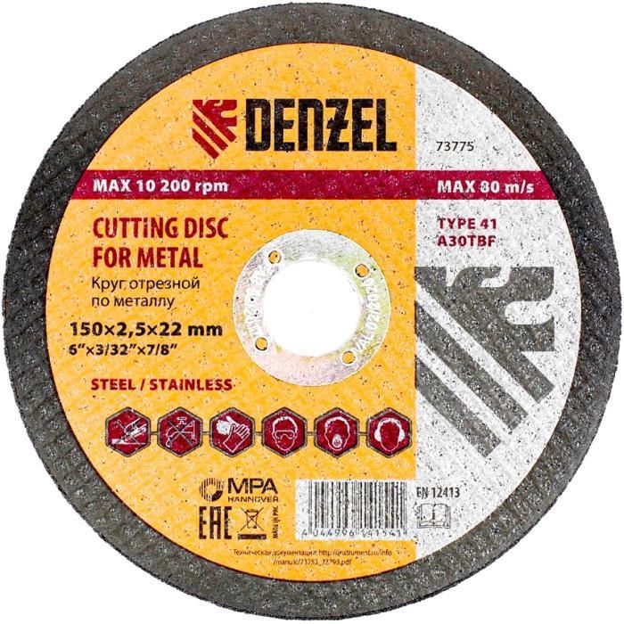 Круг отрезной по металлу, 150 х 2.5 х 22.2 мм Denzel, 73775