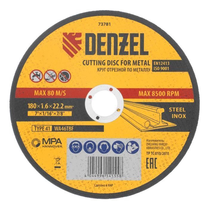 Круг отрезной по металлу, 180 х 1,6 х 22,2 мм, WA46TBF// Denzel, 73781